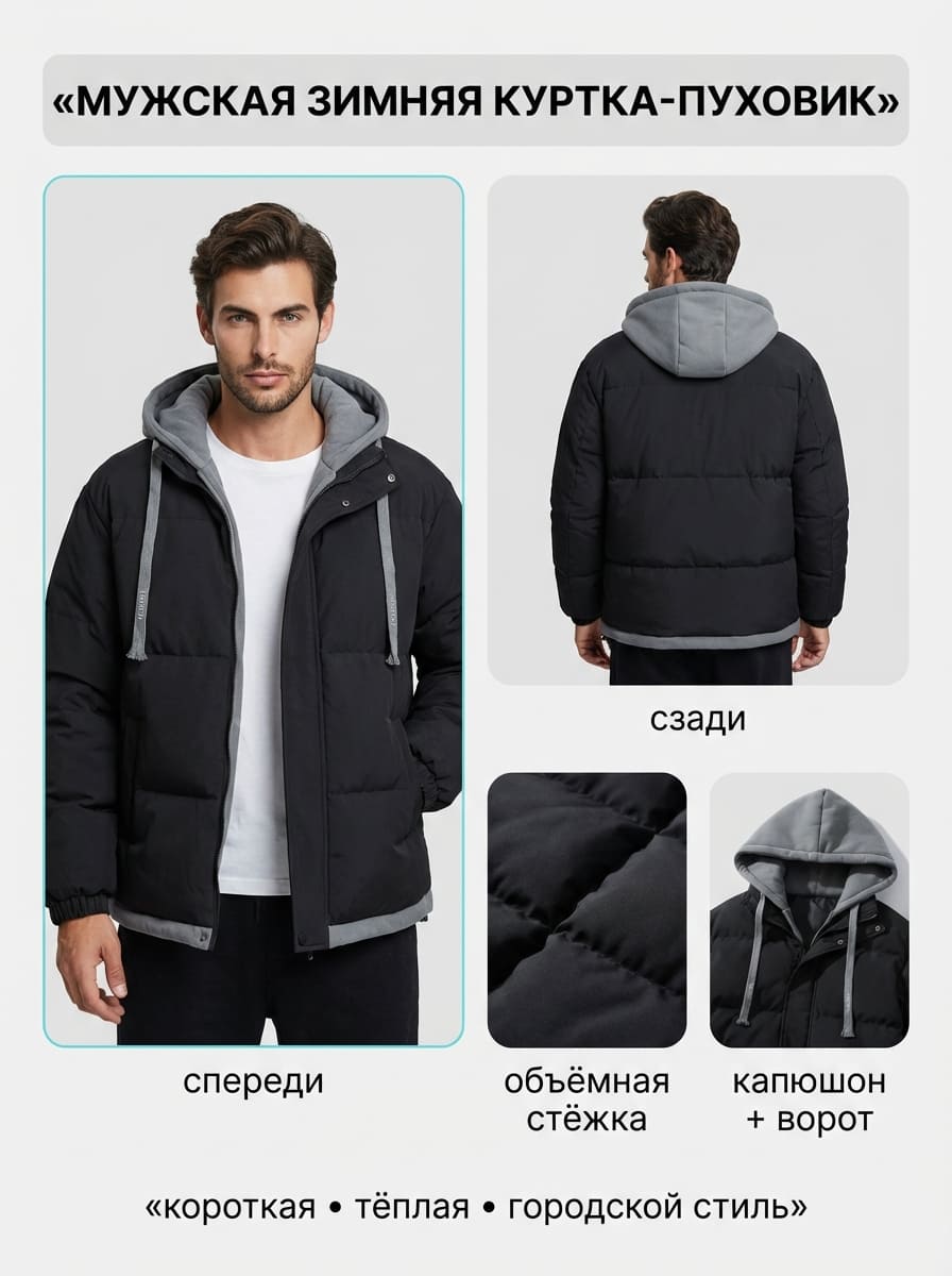- →Слайд 1: Чистое фото товара (без текста — требование Ozon)